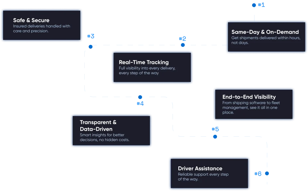 We deliver dependable shipping solutions backed by 24/7 assistance, transparent pricing, and total freight visibility.